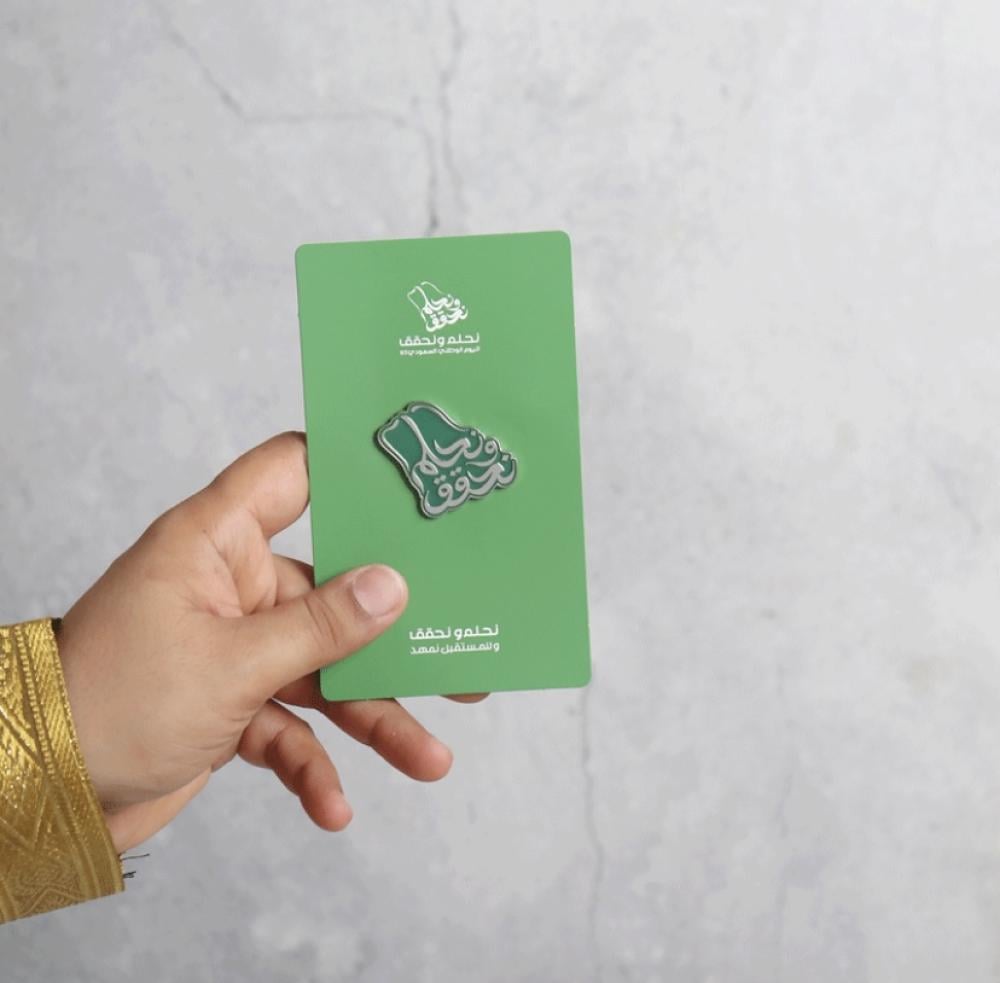 بروش لليوم الوطني السعودي هو رمز للفخر والانتماء بتصميم مغناطيسي يعكس تطلعات وحدة الوطن، يمكن ارتداؤه بأناقة وتقديمه كهدية مع بطاقة بهوية اليوم الوطني.