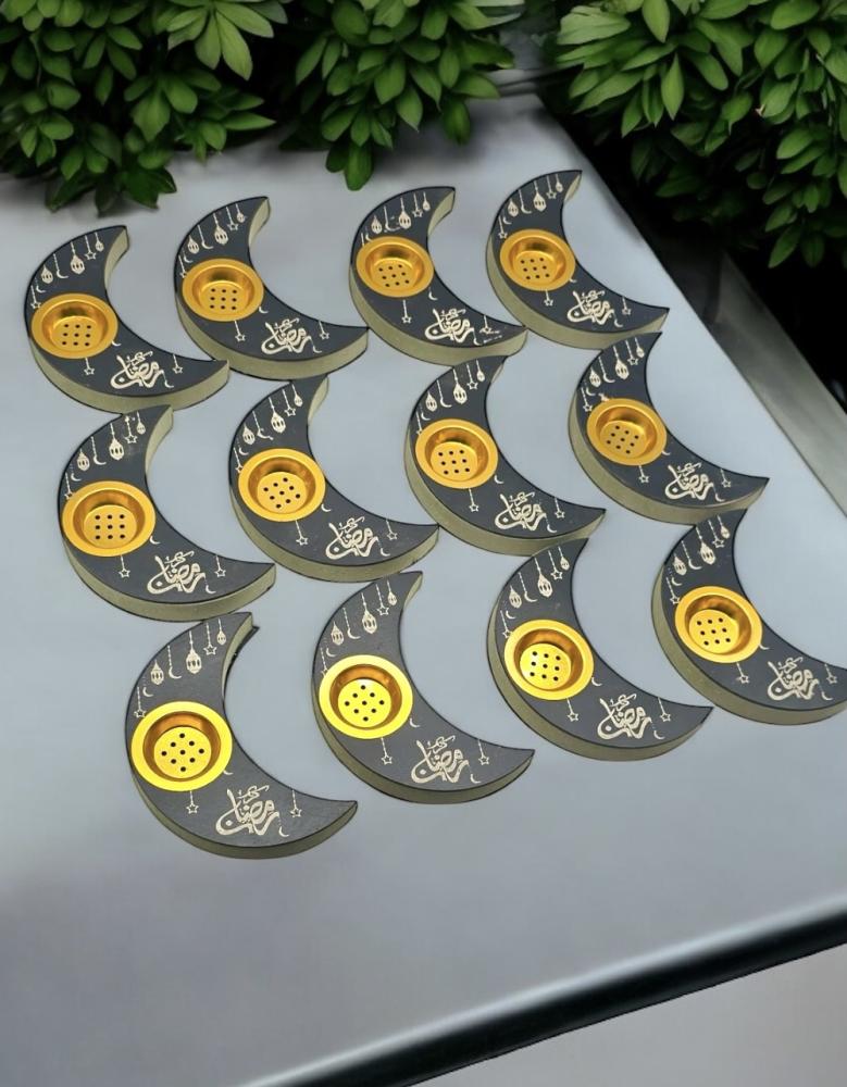 أجمل فكرة توزيعات رمضانية بالجمله! 12 مبخرة ميني، كل مبخرة مصممة على شكل هلال لتتضفي جوًا رمضانيًا على المكان. يمكنك اختيارها لتهنئة زملائك بالعمل أو الموظفين بمناسبة حلول الشهر الفضيل.